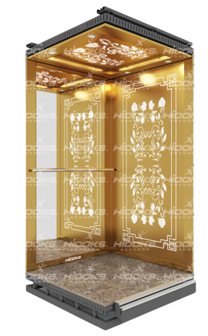 - A classic luxury cabin design highlighted by golden tones, intricate floral patterns, and illuminated decorative elements — ideal for upscale residential and boutique commercial projects.